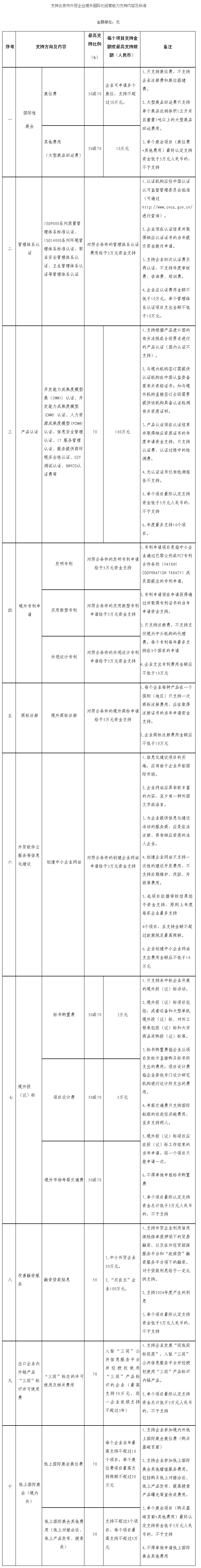 (三)每個項目支持金額最高不超過30萬元(改善融資服務(wù)、產(chǎn)品認(rèn)證項目除外,具體見支持內(nèi)容及標(biāo)準(zhǔn)表格);